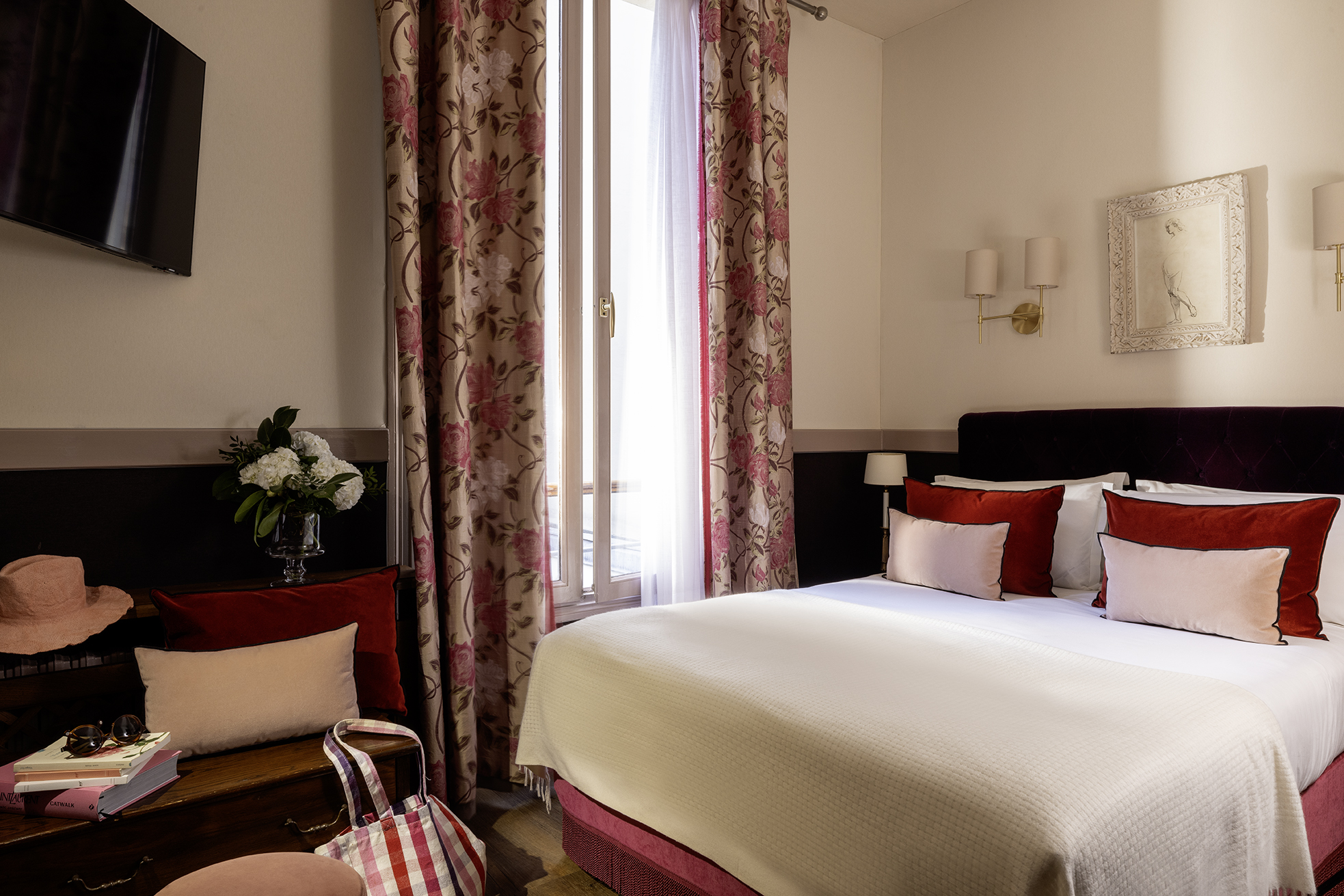The hotel’s rooms are like the hotel itself, charming and very Parisian. The atmosphere of the neighborhood is reflected in the wall motifs, the beams and the view. Only on the courtyard or garden side, the rooms have the advantage of offering a quiet retreat in the heart of Paris.